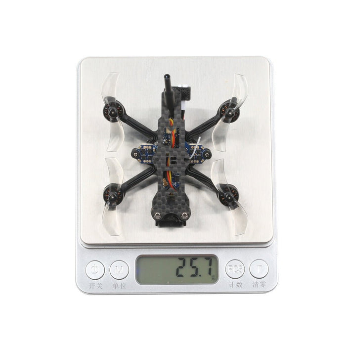 Mit einem Gesamtgewicht von 25,5 g (ohne Batterie) ist der Baby Nazgul73 auf einfache Handhabung und Manövrierfähigkeit ausgelegt. Mit einer Größe von 68,1 x 70 mm eignet sich die kompakte Drohne sowohl für Innen- als auch für Außenflüge und maximiert gleichzeitig die Tragbarkeit.
