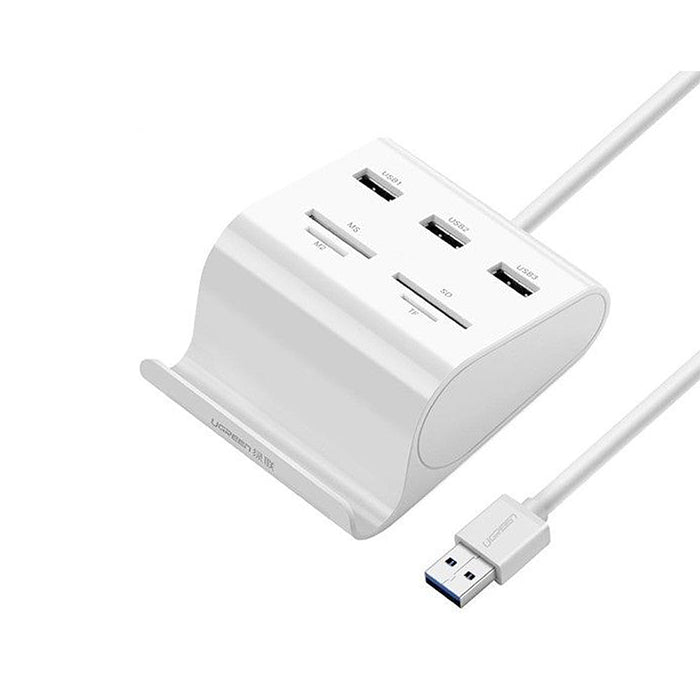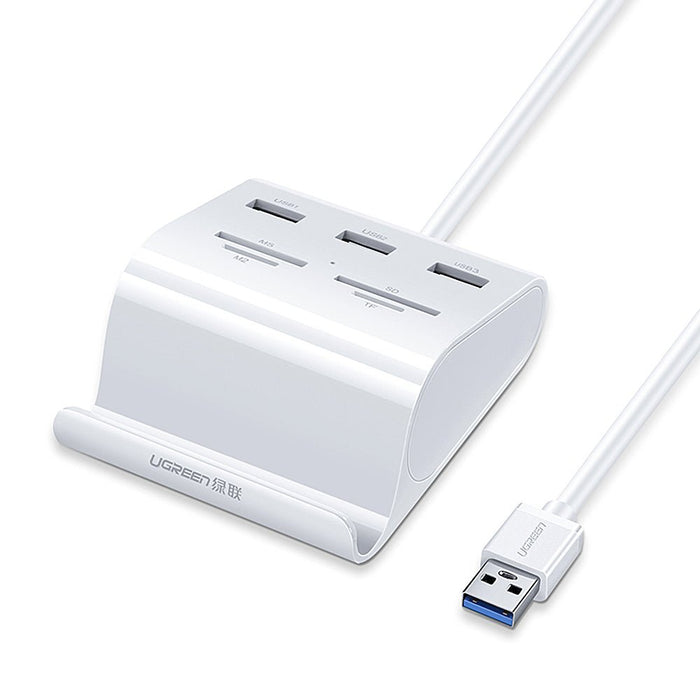 El concentrador USB 7 en 1 UGREEN US156 es un dispositivo multifuncional diseñado para ampliar y mejorar su espacio de trabajo. Equipado con 3 puertos USB 3.0 y 4 ranuras para lectores de tarjetas, este elegante concentrador le garantiza tener todos los puertos que necesita para una productividad y entretenimiento perfectos. No hay necesidad de preocuparse por los procesos de instalación o los problemas de compatibilidad, ya que este dispositivo plug-and-play funciona con una amplia gama de sistemas operativos. Con su función de soporte ergonómico, disfrute de la visualización con manos libres en su teléfono o tableta, haciendo que realizar múltiples tareas sea sencillo.