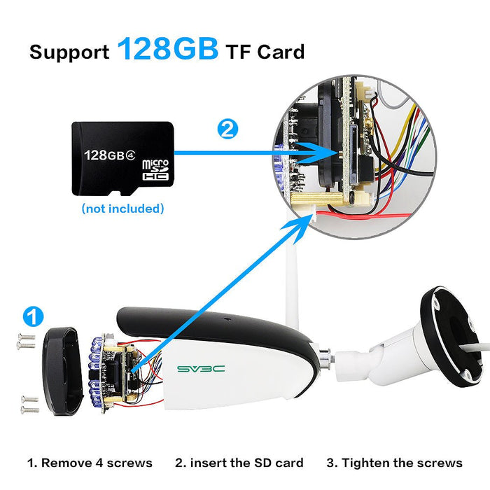 Dotata di registrazione allarmi intelligente, la telecamera WiFi esterna supporta sia la scheda Micro SD che la registrazione allarmi con collegamento client PC. Cattura e archivia prove video essenziali quando e dove ne hai bisogno.