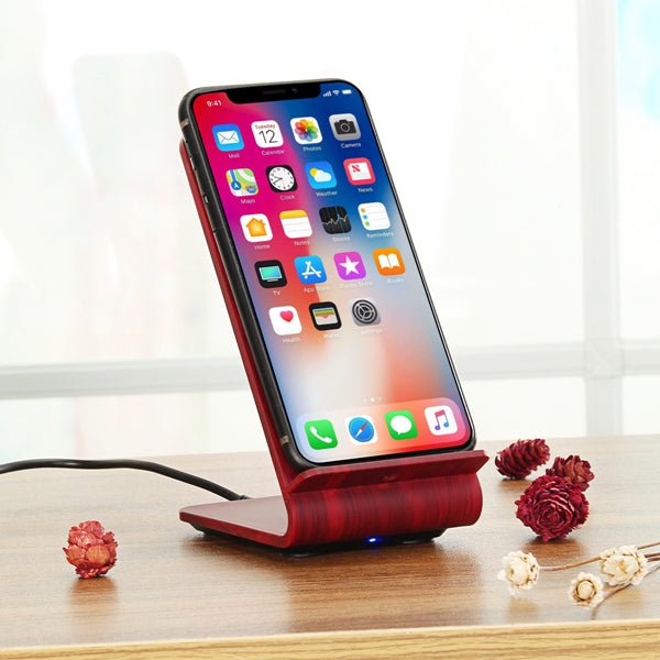 Bakeey Qi - Supporto da tavolo per caricabatterie wireless in legno per iPhone X, 8, 8Plus, Samsung S8, S7 Edge, Note 8 - Ideale per mantenere i tuoi dispositivi carichi e organizzati