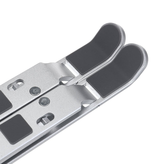 Rivoluziona il tuo spazio di lavoro con il supporto per laptop Premium in lega di alluminio, perfetto per laptop e tablet fino a 14 pollici. Con il suo elegante design color argento e il materiale in lega di alluminio di alta qualità, questo supporto non solo offre resistenza ma aggiunge anche un tocco di eleganza alla tua area di lavoro.
