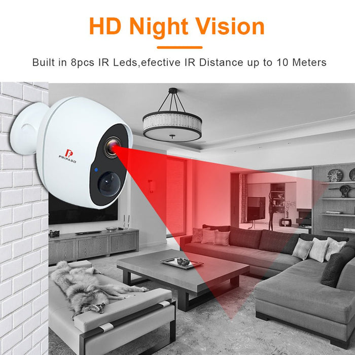 Telecamera wireless Pripaso 1080P - CCTV IP per esterni/interni, impermeabile, ricaricabile, sicurezza domestica - Perfetta per esigenze di monitoraggio e sicurezza
