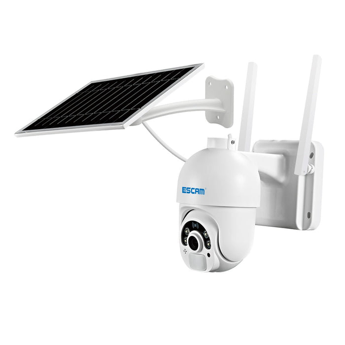 ESCAM QF250 - 1080P draadloze IP-domecamera op batterijen met zonnepaneel, cloudopslag en PIR-alarm – nachtzicht in kleur, IP66 waterdicht, PTZ, tweewegaudio voor gebruik binnen en buiten