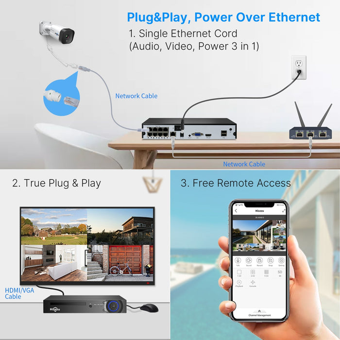 • Sluit camera's aan op de NVR met een ethernetkabel voor eenvoudige installatie