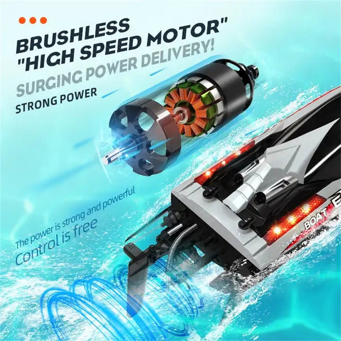 HXJRC HJ816 PRO RTR - 55 km/u 2.4G borstelloze hogesnelheids RC-boot met gekapseisde reset en LED-verlichting - Waterdichte elektrische race-speedboot voor liefhebbers van meren, zwembaden en afstandsbediening
