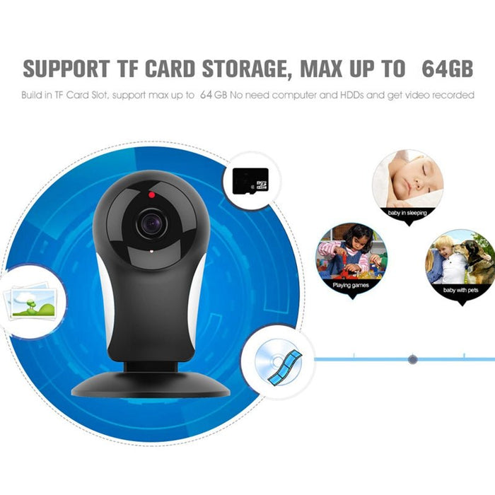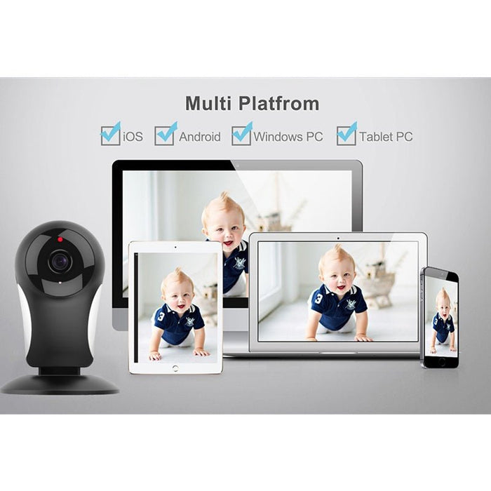 Blijf altijd verbonden met uw gezin dankzij de ingebouwde luidspreker en microfoon van de camera. Eenmaal verbonden met Wi-Fi kunt u moeiteloos communiceren met uw dierbaren via uw telefoon, tablet of pc, ongeacht uw locatie.