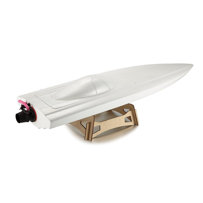 Deze boot is gemaakt van glasvezel, aluminiumlegering, plastic en elektronische onderdelen en is gebouwd om intense racesessies te doorstaan. De 4 mm aandrijfas en de 29 mm tweebladige CNC-schroeven van aluminiumlegering garanderen optimale prestaties. Het 24 mm kaliber sproeicilinder waterstraalpomplichaam zorgt voor een soepele besturing en navigatie.