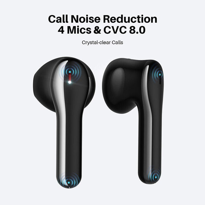 Tribit FlyBuds C2 Draadloze Bluetooth-oortelefoon 4 microfoons Gespreksruisonderdrukking Kristalheldere gesprekken Oordopjes 32H Speeltijd-hoofdtelefoon