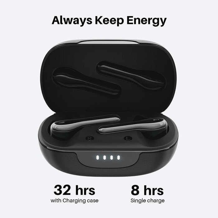 • Uitgebreide batterij en aanraakknop: Krijg 8 uur muziekafspeeltijd per oplaadbeurt voor Bluetooth-oortelefoons, en totaal 32 uur met het oplaadetui voor de draadloze hoofdtelefoons.