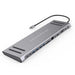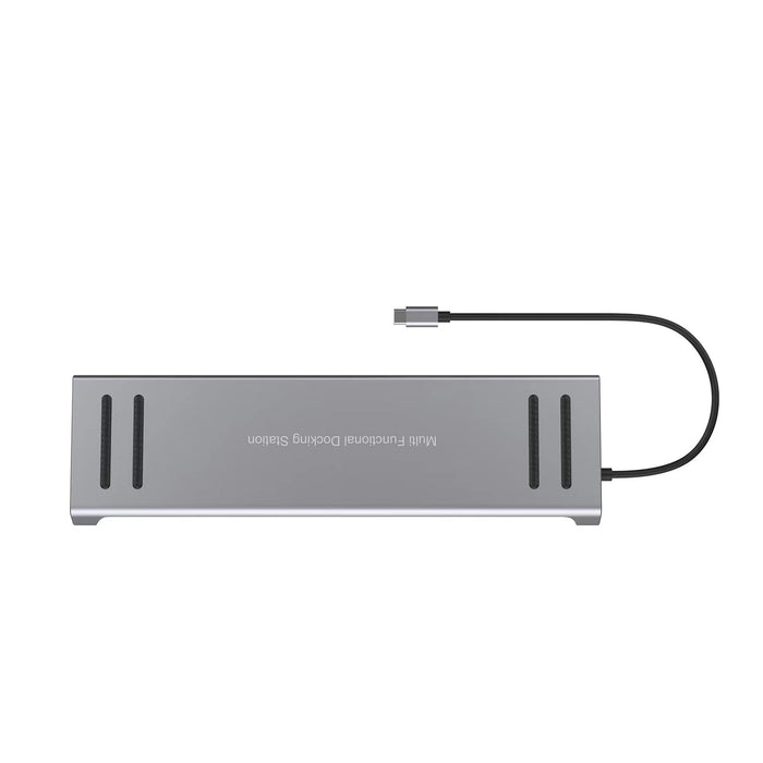 Wij presenteren een ultramodern en volledig uitgerust 13-in-1 USB C-dockingstation, ontworpen om zowel uw werk- als vrijetijdservaringen drastisch te verbeteren. Dit innovatieve dockingstation combineert een groot aantal cruciale functionaliteiten in één slank en compact apparaat. Een voedingspoort, HDMI- en VGA-poorten, een USB C-poort voor gegevensoverdracht, drie USB 3.0-poorten, drie USB 2.0-poorten en een 3,5 mm audio-aansluiting zorgen voor een naadloze, dynamische ervaring.